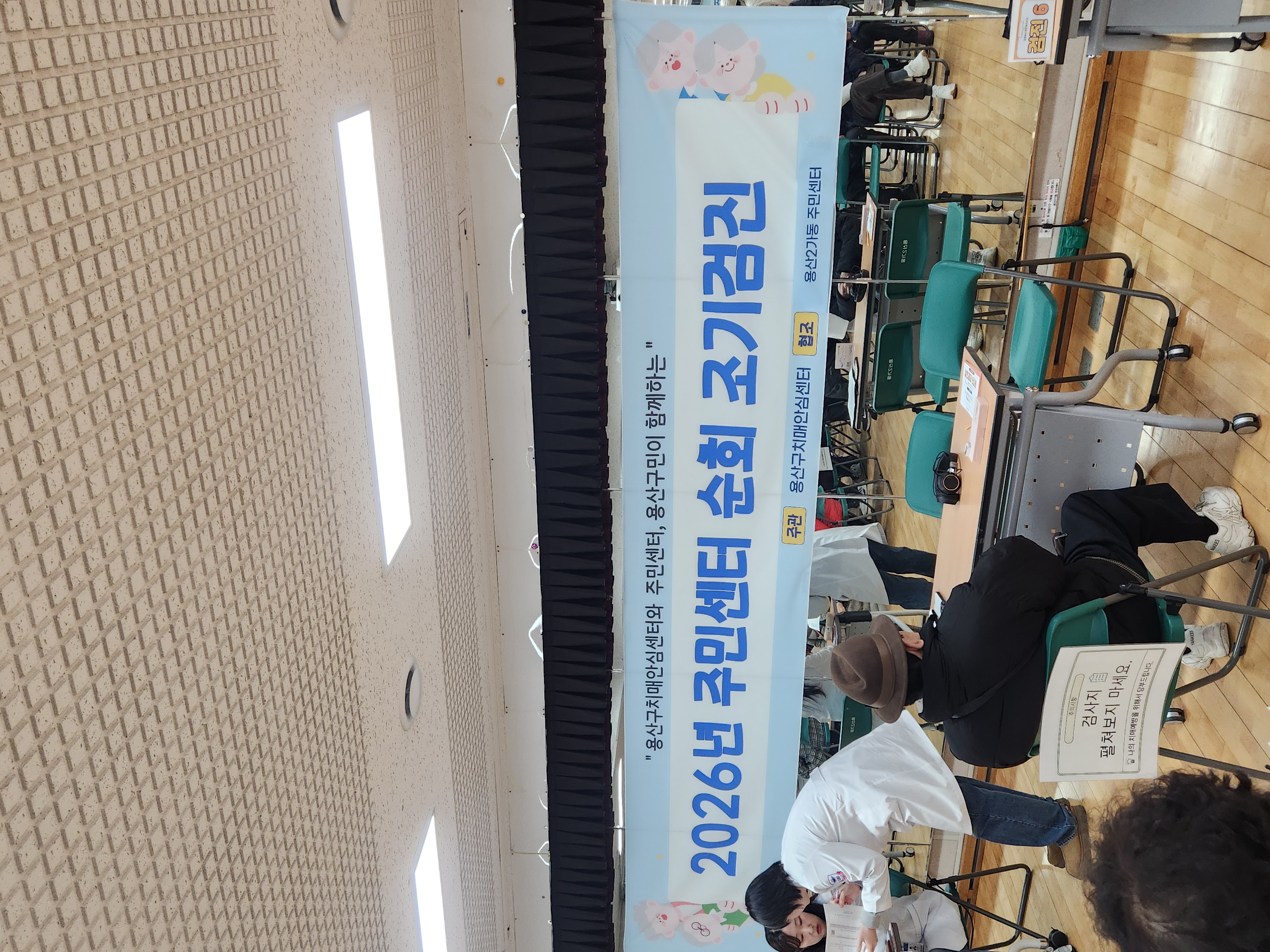 "2026년 주민센터 순회 조기검진"이라는 현수막이 걸려 있었습니다.
