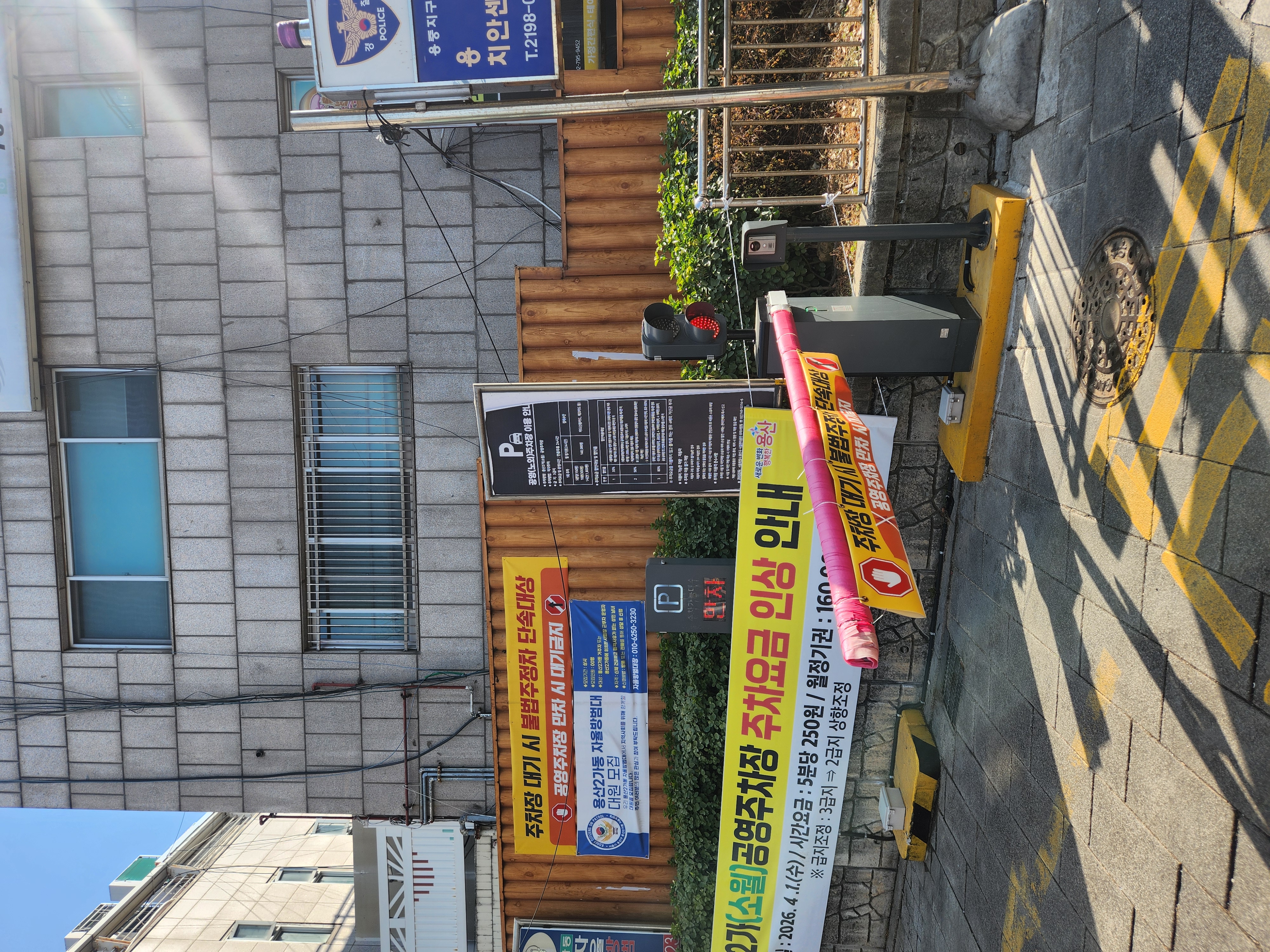 주민센터 옆에 있는 공영주차장은 이미 만차였습니다.